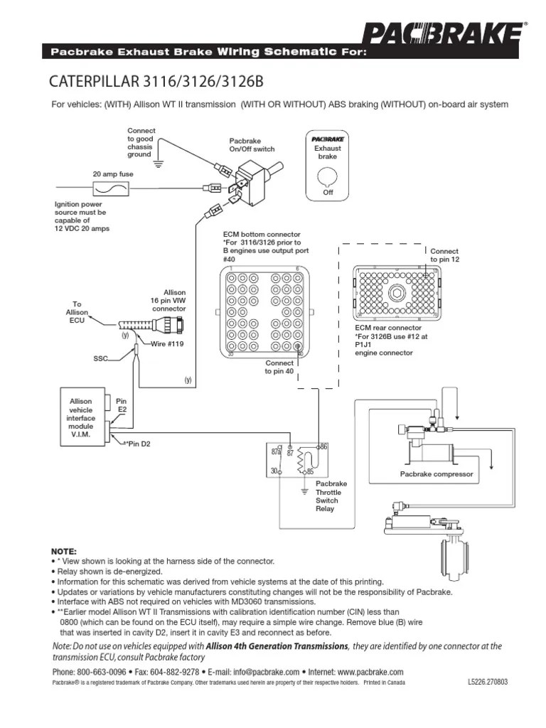Caterpilar engine diagram schematic( se mando por coreo electronico). This electronic wiring diagram is a directory that contains complete detailed material with illustrations for the cat engine 3126 models. (with) allison wt ii transmission (with or without) . Pacbrake exhaust brake wiring schematic for: I need for 2000 3126 cat engines the wiring diagram. *for 3126b use #12 at p1j1. Business class fl80 with cat 2126. 97 through 01 , cat 3126 & 3126b that i'm sure of and this may apply. Forum, topic, originator, posts, includes attachments, date, topic. Hicustomer welcomet back to ja. Factory printed caterpillar 3116/3126 ecm wire diagram for use with engine serial numbers starting with 8wl, 1wm, 4es, 2cw. Problems like yours are wiring related 99.99% of the time. Another test you can do is to load test those power and ground wires.